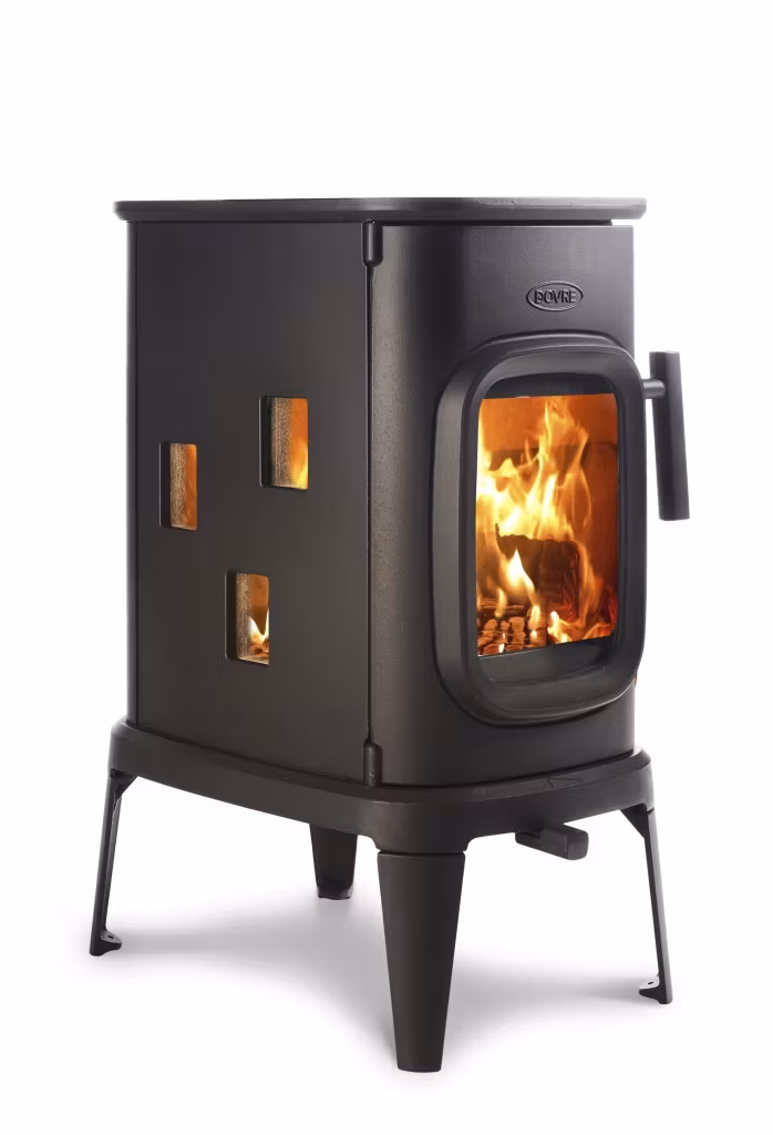 Dovre Saga 107 har man även lyckats att lägga till 3st sidoglas på långsidorna för att ge ytterligare en dimension av insyn till elden. Sidoglasen är även de gjorda med föruppvärmd luftspolning för att de skall hålla sig rena från sot, även denna modell kan fås med en designad kokplatta (tillval) på toppen om kaminen ansluts baktill.
